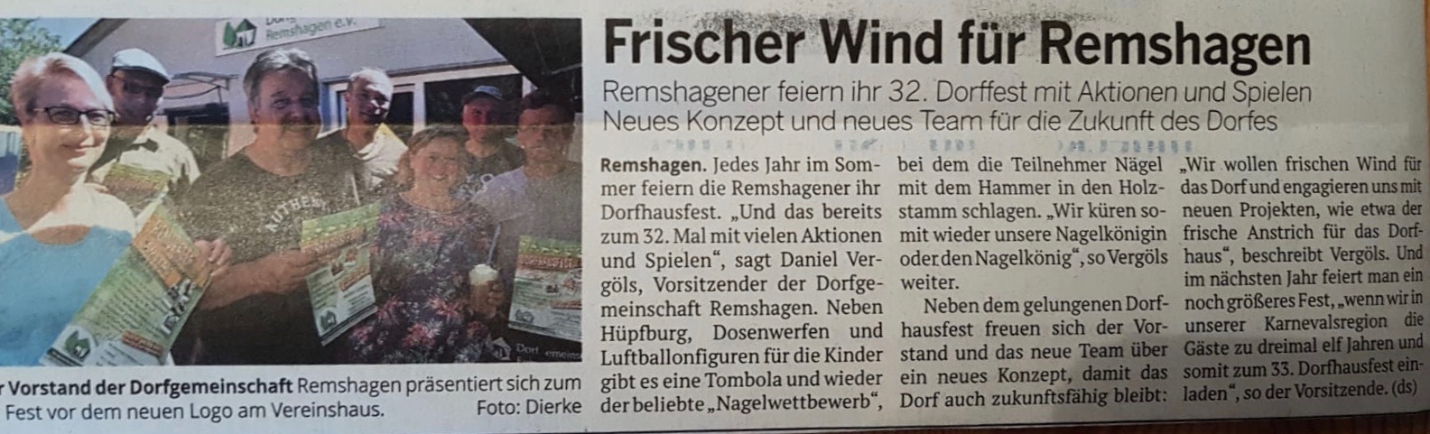 Presseartikel über die Dorfgmeinschaft Remshagen e.V.